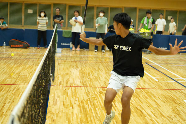 最後には加藤季温プロと安田彰汰選手とのシングルス対決が行われました。